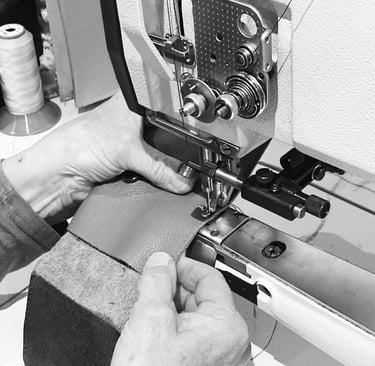 Dans une démarche de développement durable, Joëlle valorise les « rebuts » de grands fabricants maroquiniers. Les créations cuir sont réalisées à partie de chutes de cuir de belle qualité (agneau, vachette, veau…) parfois associées à d’autres matières (tissu, raphia soie…) En se laissant guider par les matières, les couleurs, elle imagine des pièces uniques ludiques et joyeuses. Elle n’hésite pas à utiliser les « défauts des peaux (griffes, traces de barbelés qui sont l’expression d’une vie antérieure de la matière) Elle met l’accent sur la simplicité des formes afin de sublimer la matière. Joëlle réalise des pièces uniques, mais elle peut réaliser des modèles sur commande ou effectuer de petites réparations en fonction du matériel à sa disposition et de ses compétences !