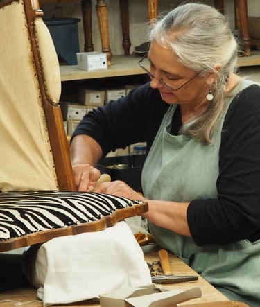 Son art est d’abord l'art de l'écoute. L’écoute de l'histoire d'un siège, de l'histoire de son propriétaire. L’art du tapissier devient alors l'art de rajeunir. Rajeunir un style avec respect, pour intégrer dans le siège d’autrefois. Lorsque vous aurez trouvé l’harmonie entre matières, motifs et couleurs, alors ses mains entreront en action, et votre siège deviendra une pièce unique : la vôtre.